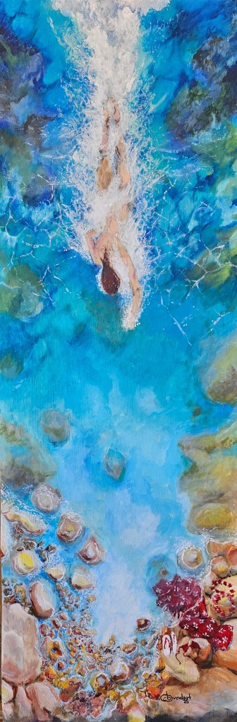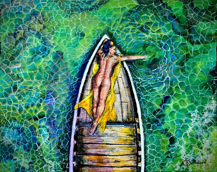 Acrylic, 21.5×9.5 inches, on wood panel. Exhibited in the 2025 Annual Waterfront Show & Competition, in memory of Nell Hardeman. Hosted by Society of Arts & Crafts (SAC’s)
