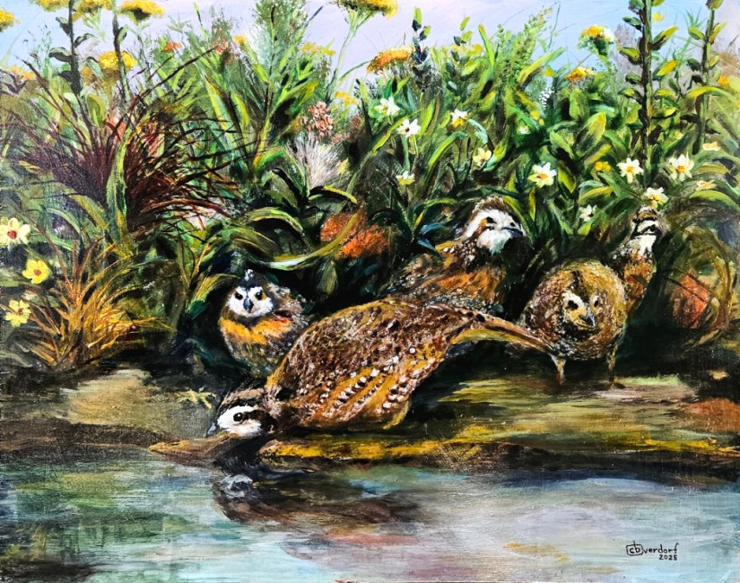 A family of Bobwhite Quail at a local watering hole.